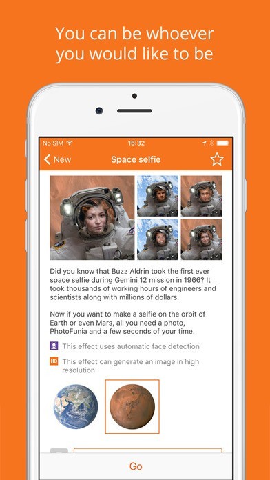 無数のエフェクトの中から好きな物を選び、組み合わせたい写真・動画を選択するだけでコラージュが出来るアプリです。雑誌の表紙・タイムズスクエアの電光掲示板・宇宙飛行士やサンタクロースの格好・美術館の肖像画など、面白いものがたくさんあります。また、砂や壁に落書きしたり地面に名前を彫刻したりといった文字の編集をして遊ぶことも可能です。エフェクトライブラリは常に拡大しており、毎週新しいものを見つけられます。完成した作品は保存したり、メールで送信したり、SNS上で友人たちと共有することが出来ます。