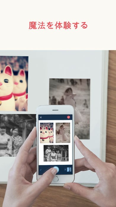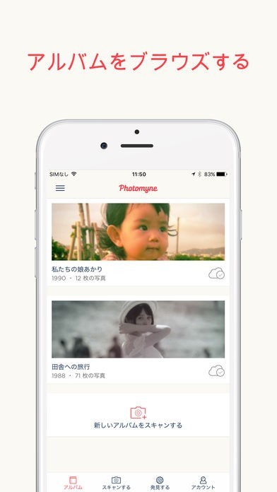 スマホで撮影するだけで、紙の写真をスキャンすることができます。写真と背景を自動で認識してくれるので、余計な部分は保存されません。スキャンした写真は、アルバムになるので複数の写真を同時に見ることができます。