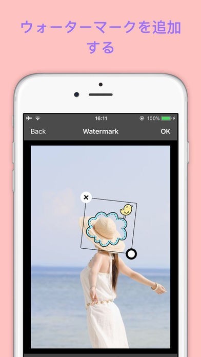 - 写真にウォーターマークを付ける: あなたは透かし、顔文字、絵のステッカーができます。