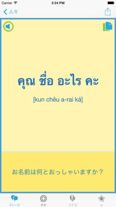日常会話で使われるタイ語と公の場で使われるタイ語を切り替えて確認することが出来る!