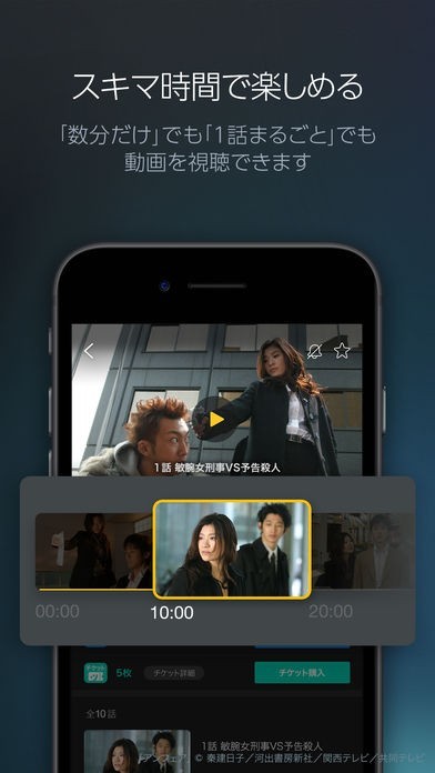 このアプリでは、各作品はチャプターと呼ばれる10分単位に分割されています。そのため、ちょっとした空き時間に一時停止などの操作をする必要なく気軽に視聴することができます。