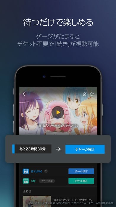 作品ごとに1日10分まで無料で見られ、有料チケットですぐに続きも見られる!