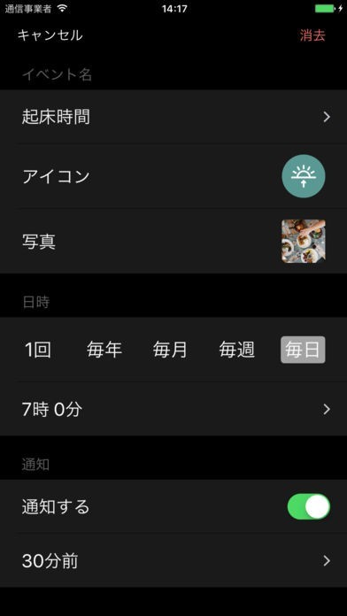 朝起きる時間から就寝の時間や帰宅時間をセットし、生活習慣を改善することができます。それに加えて忘れたく無いイベントや人生の目標決めて、それを達成するまでの時間を決めるのもおすすめです。