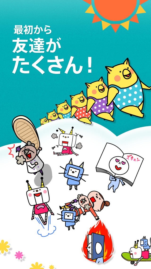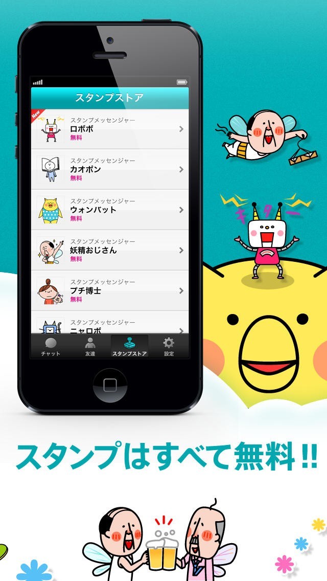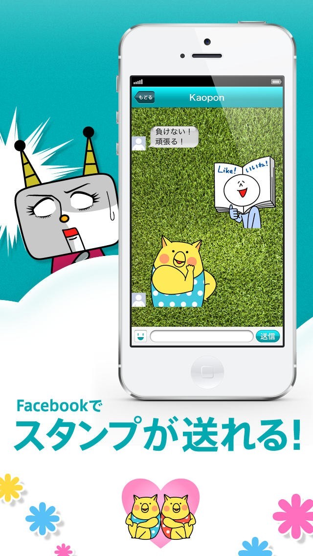 Facebookとアプリを同期化し、フレンド登録してる相手に、可愛いスタンプを貼り付けてメッセージが送れる