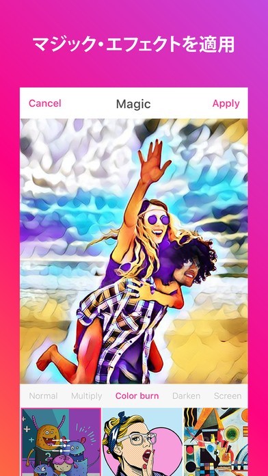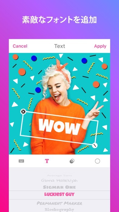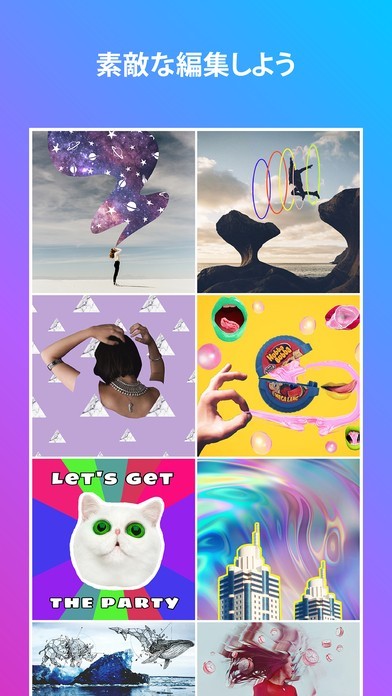 撮影した画像や動画をgifにしてくれるアプリです。ただ単にgifにするだけではなく、かわいく加工したり、面白いgifにしてくれたりすることが出来ます。gifにすることによって、ツイッターやインスタグラムやフェイスブックでも簡単に見れるように出来るというのが最大の利点であるので、その利点を活かしてせっかく多くの人にみてもらえるので、いろいろと加工したりすることによって、素晴らしい作品を生み出してみてはいかがでしょうか?