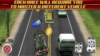 App Storeより引用If you’re serious about driving this is a place for you to be. The series of races will take place in four different locations. Starting with a crazy run across the bridge, you’ll need to win each race to get a ticket for the next one. Other venues include: a desert, an ancient forest and a super wide highway. Each race will require you to master a different vehicle.