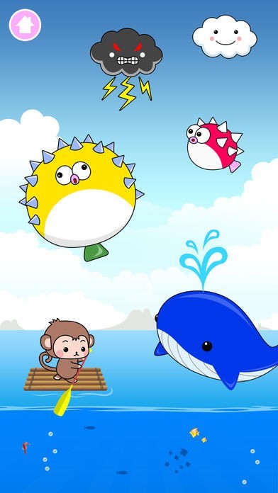まだ言葉を話す事が出来ない小さなお子様でも十分に楽しむ事が出来るアプリがこの「おさるランド」です。内容は特に決まりやゴールがある訳では無く、画面内の動物や物をタップすると、リアクションをしてくれるというシンプルなものです。主人公のサルが可愛かったり、虹や風船等お子様が喜ぶファンタジックな世界観になっています。また、おさるの世界は青空に鳥が飛ぶ草原、星空が綺麗で大きいワニがいるジャングル、魚達が泳いでいる海から選ぶ事が出来るため、お子様は飽きる事無く遊ぶ事が出来ます。また、動物達の動きはおそい、ふつう、はやいから選ぶ事が出来るので、お子様がビックリしない様に設定する事も可能です。ルールが無いのが魅力的!おさるの世界でお子様と楽しい時間をお過ごしください。