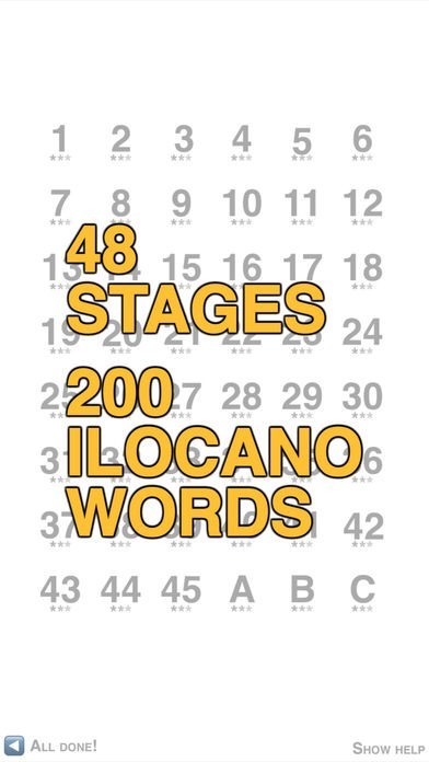 出題されるイロカノ語のワードパズルを解く正答率および回答までにかかった総時間でスターマークがついて成績評価が下るしくみとなっています。48すべてのステージで星マーク3つを取ろうというゲーム性がモチベーションの継続につながります。
