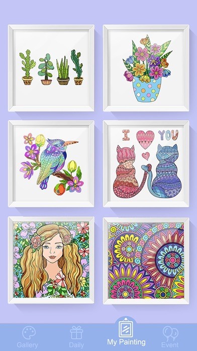 絵を描いたり、色を選ぶのが苦手な方も大丈夫です。用意されたテンプレートの番号に従って、決められた色を簡単タップで塗っていくだけでハイクオリティな塗り絵が仕上がります。