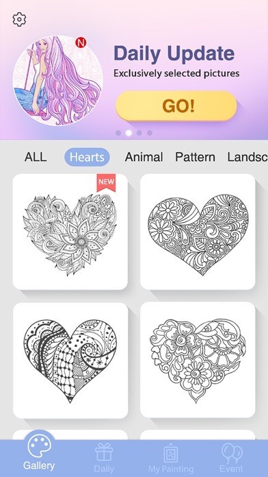 ハイクオリティ塗り絵を楽しもう、塗り絵ゲームTap Color