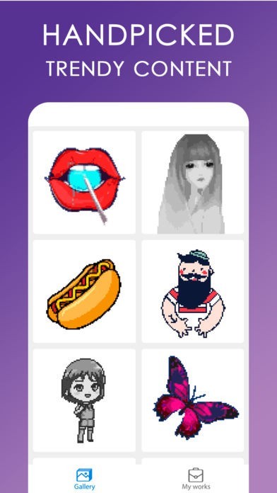 Put all things off and start enjoying a unique drawing art therapy right away! Our Meow app was created to be simple and easy for kids and adults. Drawing by numbers is a good way to escape from stress and tension, it brings necessary focus and clarity of thoughts. Just tap a pixel and fill it with a suggested color.