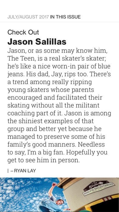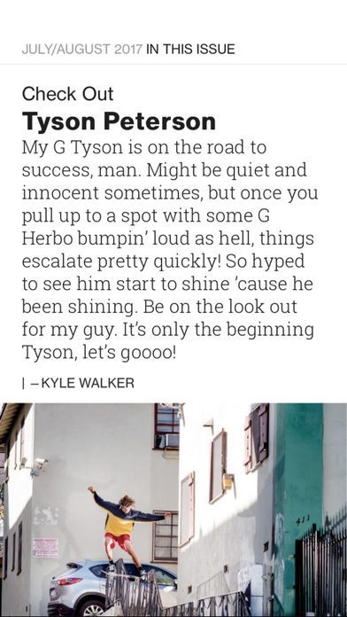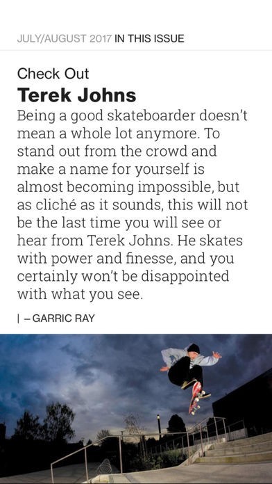 スケートボード関連ニュースやスケーターへのインタビューのほか、スニーカーやユニフォームなど専門グッズの紹介、テクニックに関するTipsなども掲載される希少価値のある専門雑誌です。