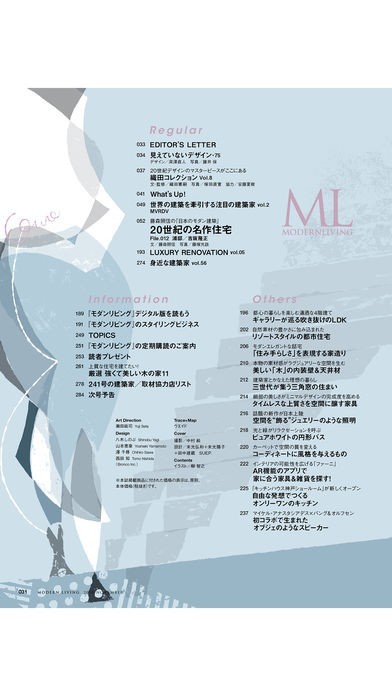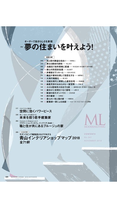 MODERN LIVING モダンリビングは住宅や建築をテーマとした雑誌アプリで、様々なハイレベルな建築家による実際の施工例をビジュアルで紹介するものとなっています。実際に住居として使われるインテリアも重点的に取り上げているため、実際の住まいやリフォームに置いても参考になる施工例が掲載されます。また、自然との調和をテーマとしており、木や植物をインテリアに取り入れた例が紹介されます。雑誌は定期購読も可能で1年の定期購読ではお得になります。