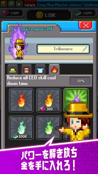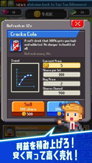 App Storeより引用自分の会社を持って、お金持ちになりたいと誰でも思ったことがあるはず。今、このドット絵の世界で、あなたの夢が叶える!!10本の指でライバル会社を潰して、ドア街の大物になれ!!