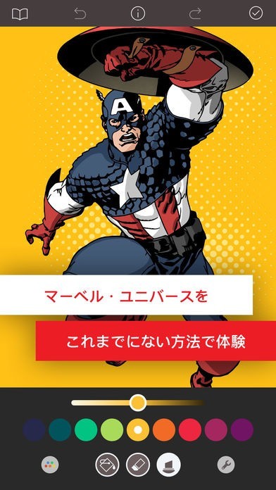 「Marvel: Color Your Own」は、数々のMarvelヒーロー達を自分好みに塗装して友人達と共有できる、楽しい塗り絵アプリです!スパイダーマンやキャプテンアメリカといった歴代のヒーロー達から、サノスやマグニートーといった魅力的な悪役キャラまで登場しています!
