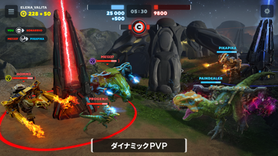 Dino SquadはスピーディーなマルチプレイヤーPvPシューター。スケールとゲームプレイのバラエティでは他の追随を許しません。好きなようにプレイして、最高に頭の切れる恐竜ハンドラーであることを証明しましょう!