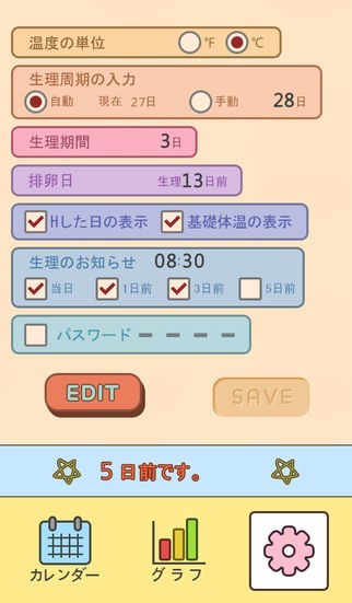 カレンダーで表示してくれる女性のための生理予定日計算アプリ