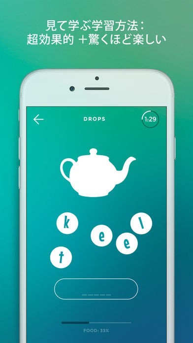 私たちはゲームがなぜこんなにも楽しく遊べて、癖になるところをしっかりと研究しそのゲームのエッセンスをDropsに注入しました。Dropsはただの学習アプリだけではなくゲーム感覚て学べるように開発しました。