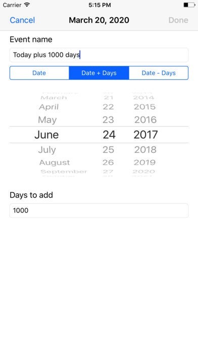 You can also create your own events to mark significant dates in past or future, which are beyond limitation of standard calendar. With custom events, you can see, e.g. how many days passed since your birthday, wedding anniversary or any other events you want to mark.