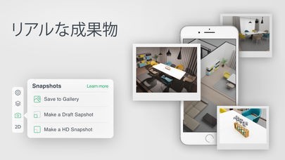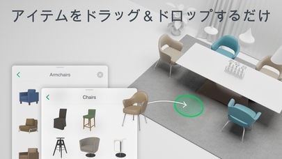 部屋の模様替えなどで、新規の家具を購入したり家具の位置を変更するのに実物を動かすと効率が悪いのでこのアプリで家具のコーディネートのシュミレーションをすればかなり効率よく出来ます。