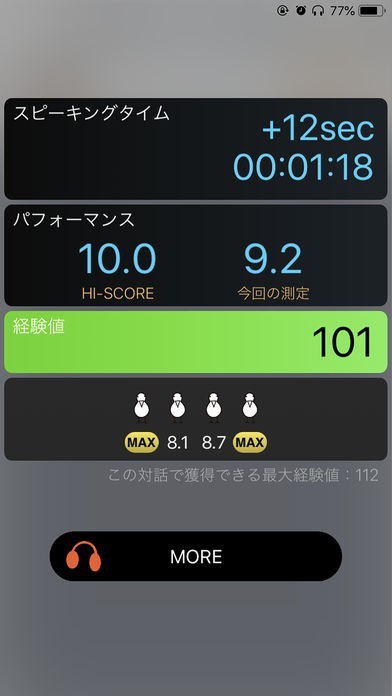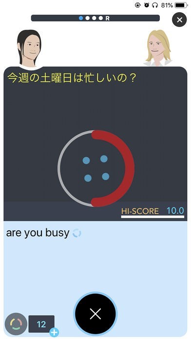 シャドーイングだけのモードと、音声認識による判定モードの2パターンの練習ができます。音声認識による判定モードを利用するにはアップ内課金が必要です。(50回分が無料でついています)
