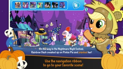 App Storeより引用Boo! There’s at least one night of the year when it’s fun to be scared! For our favorite fillies, that’s Nightmare Night! But when reformed Princess Luna decides to join the celebration, will she find a way to fit in or will her dark past hinder her efforts in making friends? Join Twilight Sparkle, Pinkie Pie, Applejack, and Fluttershy as they lend a helping hoof in getting Princess Luna into the Nightmare Night spirit and convincing her that scary can be thrilling.