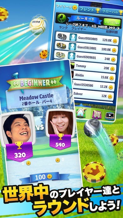 このアプリでぜひ遊んでほしいのがオンライン対戦モードです。国内だけでなく、全世界のプレイヤーと一緒に遊ぶことができます。1ホール対戦なので1プレイはさくっと遊べますが、途中退出はしないようにしましょう。