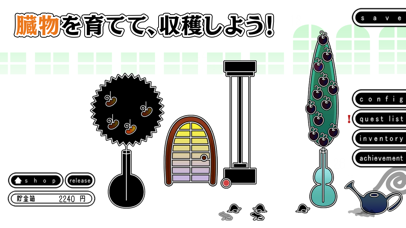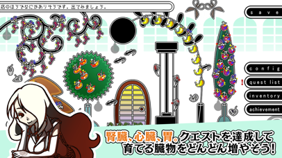 なんとなく陰を感じさせるかわいらしいキャラクターや、全体的にすっきりかつポップに構成された画面の中で、育てると内臓の実をつける木を育てていく不思議体験ができます。