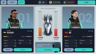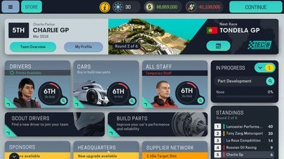 携帯ゲームかと目を疑うほどの圧倒的リアルな3Dグラフィック、レーシングカーの多様なカスタマイズ項目、凝ったパーツ群、雇えるドライバーや技術スタッフの多彩さ、スポンサープロモーションなどの運営管理のリアルさなど含めて本格的なレーサーチーム運営ゲームとなっています。