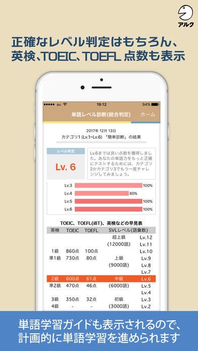 今の自分の英語力がどれくらいかを見極めるのに役立つ診断テスト機能が用意されています。診断コースが分かれているので、手軽なチェックにも、学習内容の定着度確認テストとしても使えます。