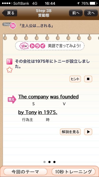 6. 詳しい文法説明が読みたい際には、「解説を見る」ボタンを押してください。
