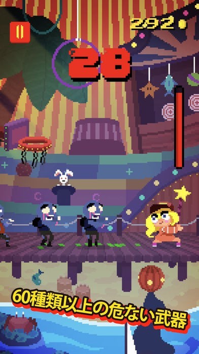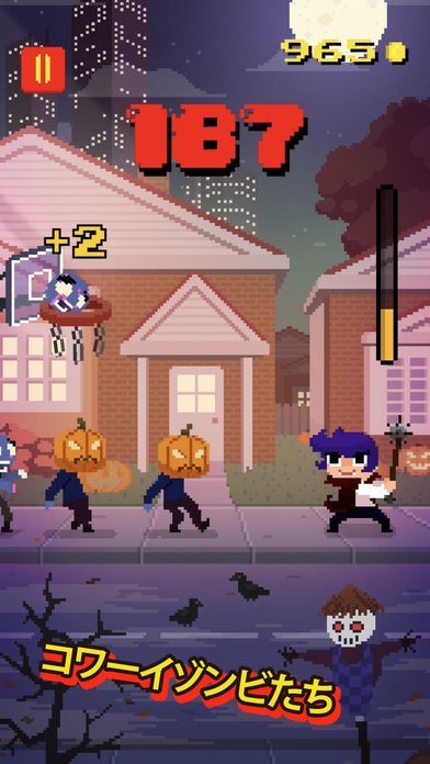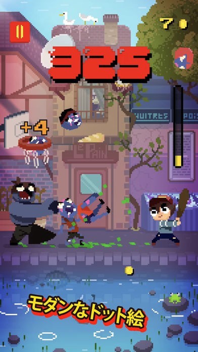 App Storeより引用小さな平和な街? まさかね! ここはゾンビの支配する終末世界。心強いバットでコイツらの生首をリングに通して身を守れ!