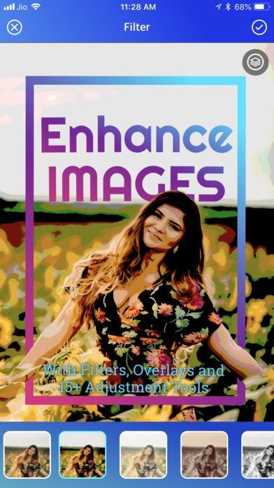 写真フィルターとオーバーレイの幅広い選択を適用することにより、あなたの写真を強化する。あなたは素晴らしいプリセットフィルタや明るさ、コントラスト、露出、色相、彩度、セピア、ビネット、温度、ぼかし、ハイライト、および影のような高度の写真編集ツールを搭載した Camorify のフォトエディタで次のレベルにあなたの写真を撮ることができます。