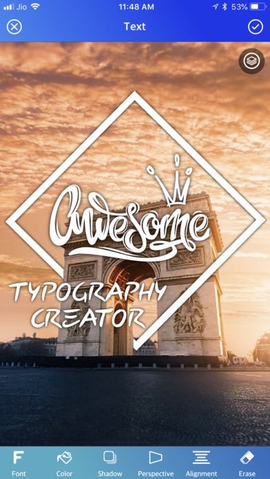 Camorify は、あなたの写真の後ろにアートワーク、キャプションやテキストの効果を与えるために最も強力な消去ツールを持っています。[消去] ツールを使用すると、テキストやアートワークの不要な部分を削除して、写真や画像の背後に表示することができるようになります。