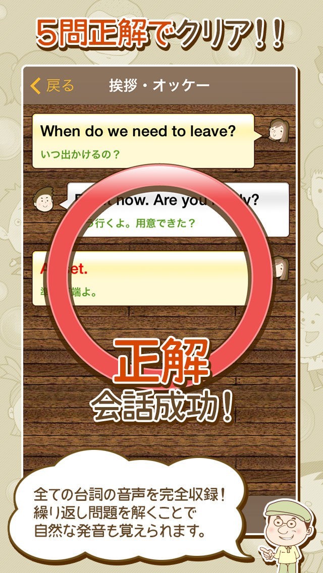 会話の流れで答えるため、ネイティブと本当に会話をしているようなリアルな気分が味わえます。