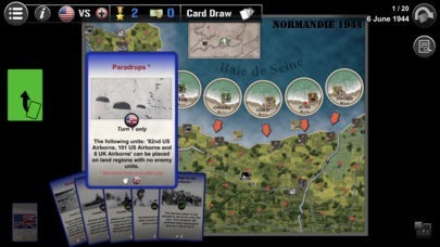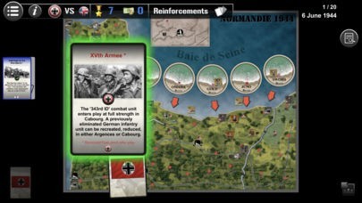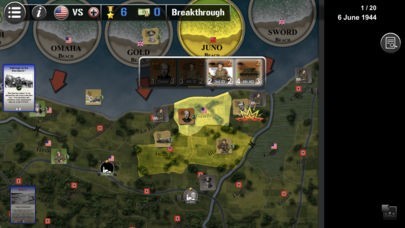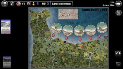 App Storeより引用Unique game concept simulating with a single rules system ALL conflicts throughout the world from ancient times to nowadays, from massive wars to asymmetrical conflicts. The application contains the scenario Normandy 1944. Several other scenarios are purchasable in content inApp, including: Hamilkar 264 (First Punic War), Hastings 1066 (Conquest of England), Saratoga 1777 (American War of Independence), Waterloo 1815 (Napoleonic wars), Bull Run 1861 and Missouri 1861 (Civil War), Tannenberg 1914 (World War I), Malaya 1941 (WW2 Malaysian campaign), Bulge 1944 (WW2 Battle of the Bulge), Berlin 1945 (End of World War II) ) and Six Days 1967 (Six Day War). Other scenarios will be added regularly.