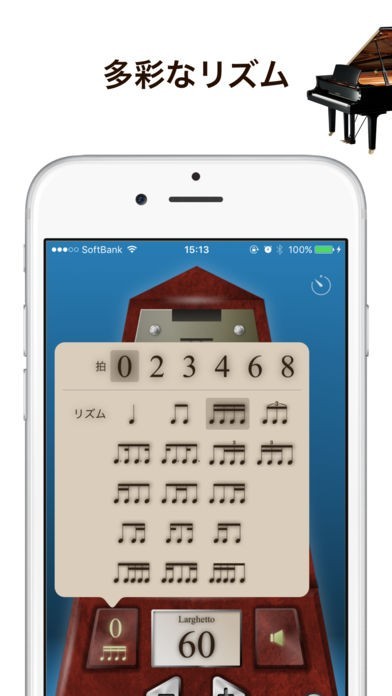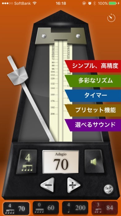 重たくて、かさばるメトロノームを持ち運ぶ必要もなく、アプリで使えるので、プリセット機能などを使えば、ワンタッチで様々な種類のリズムに切り替えることができ、手間なく使えます。