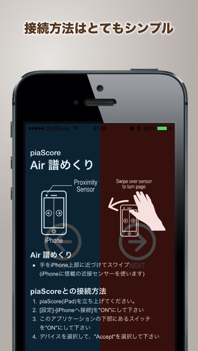 Air譜めくり機能は、スマホに手を近づけるとページをめくっていく