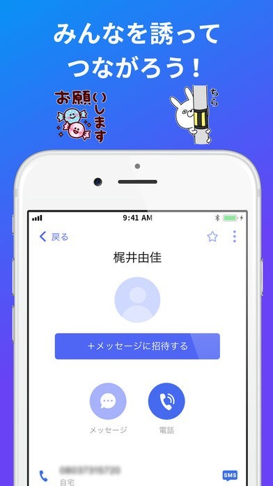 携帯電話番号を元にしてメッセージを送受信!スタンプや写真も利用可能!