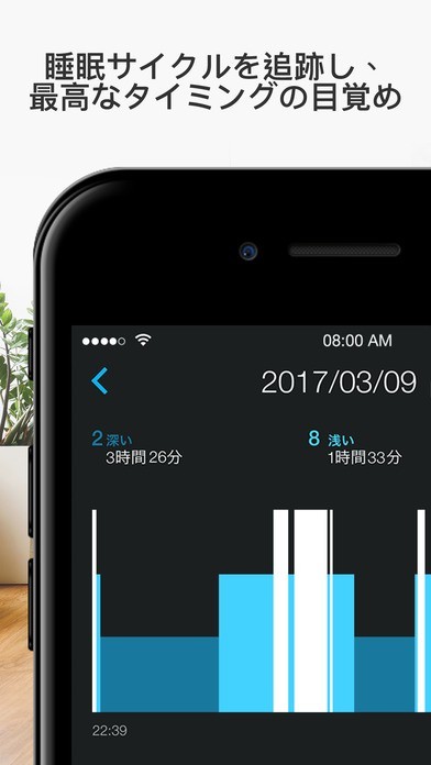 目覚めたらあなたの睡眠パターンやサイクルのきれいなグラフを見てください。寝ている間のいびき、笑い、誰かの名前を呼んでいるところの録音を聞きましょう。