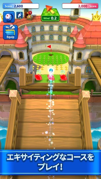 マルチプレイでは、ボールをぶつけることで弾き飛ばしジェムが獲得できる盛り上がるルールが採用されています。SNSで友達を誘ったり、ホールインワンを自慢することも可能です。