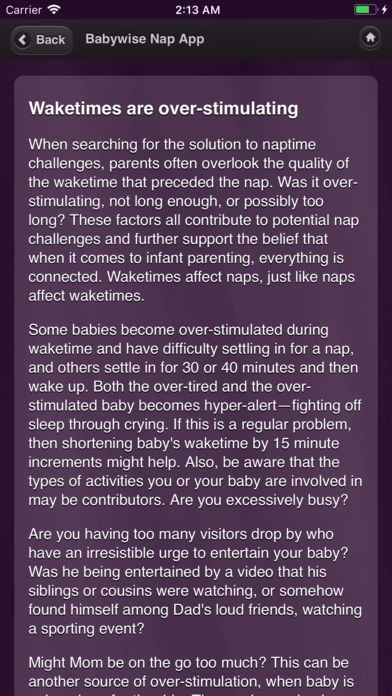 The Babywise Nap App assumes a baby is on a well-established feed-wake-sleep routine, already sleeping through the night a minimum of eight hours, and has already established healthy nap patterns.
