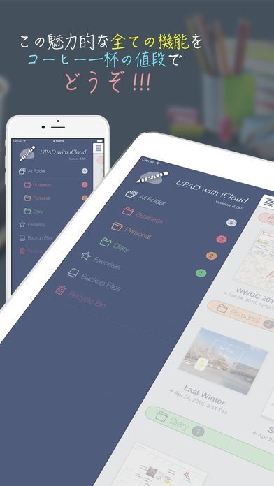 UPAD for iCloudはひらがなやカタカタや漢字を書く時に心地よい感じで書けるアプリになります。まるで紙に書いたようにメモを残しておけるので自分の筆跡かどうかも知っている人が見たら分かって便利です。