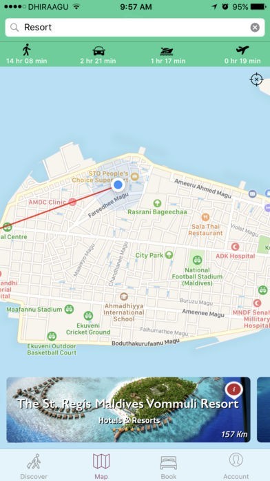 *モルディブのどこに到着するかの推定時間を取得する(歩行、スピード搭載、車または航空による)