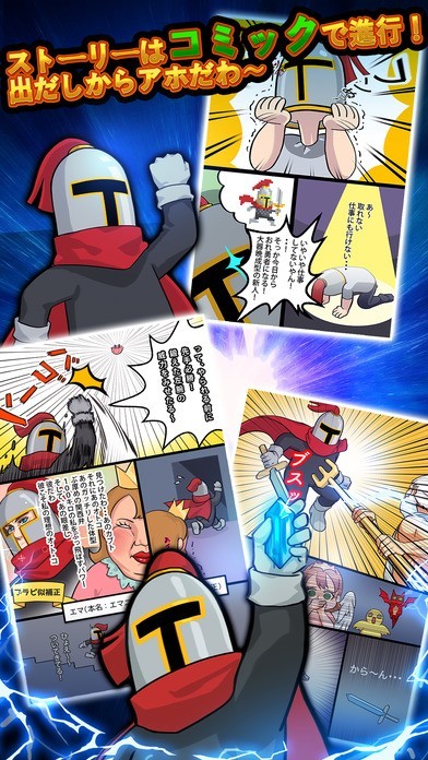 おじさんの勘違いから始まる地球を危機に陥れるストーリーを楽しめるRPGゲームアプリとなっていて、昔懐かしいドット絵のキャラクターたちが画面を動き回るコミカルなグラフィックとなっています。
