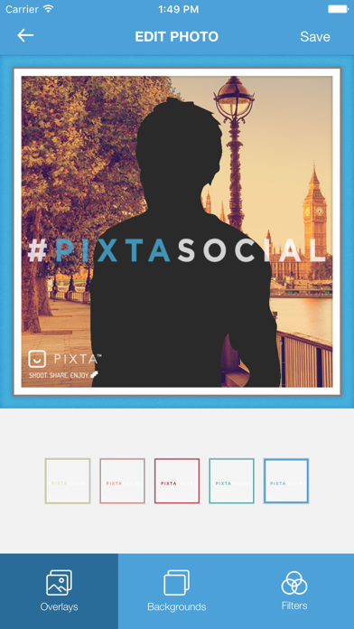 App Storeより引用Photos are about framing moments. As brands, we want to see the moments we help create be shared - that's where PIXTA comes in. Welcome to the world's first instantly branded, roaming photo system. Trained PIXTA brand ambassadors are deployed at your events and capture amazing fan photos and guide consumers through the photo sharing process. Photos are uploaded as they're taken LIVE so that fans are sharing their experiences with their friends in real time.