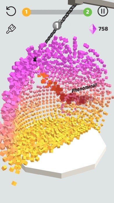 App Storeより引用You'll never be bored when you have all this destruction ahead of you. Move your aim, focus on the tricky shapes, and just shoot! Watch those huge shapes crumble to tiny pieces after each perfect turn — and feel how oddly satisfying it is for yourself!