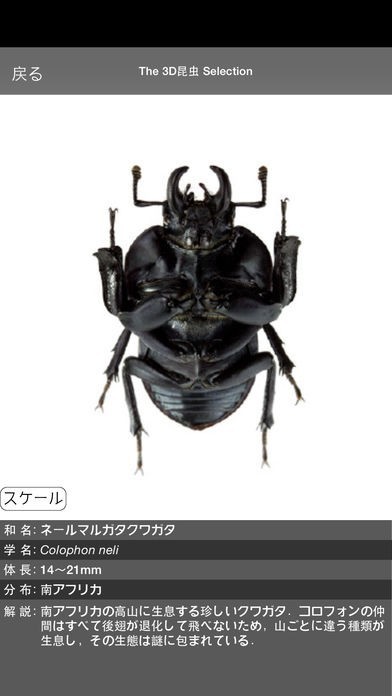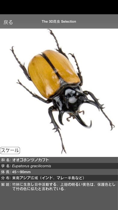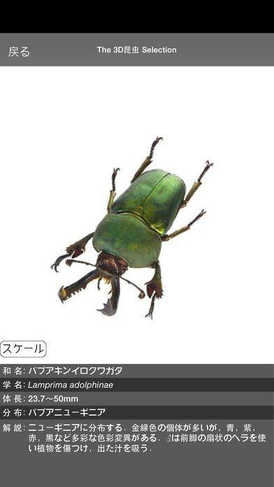 昆虫について詳しくなれるのがこのアプリです。 デジタル3D昆虫アプリのために360度自由に画像を閲覧することが可能です。 紙の昆虫辞典や図鑑ではできない角度から観察できるという特徴を持っています。 画像の拡大もできるため、細かい部分まで観察したいという時にも便利です。 オオクワガタやカブトムシなど様々な昆虫を収録、和名や学名、体調、分布、解説といった情報も入手することが可能です。 昆虫が好きな方、標本では作るのが難しいという方にも便利なアプリです。