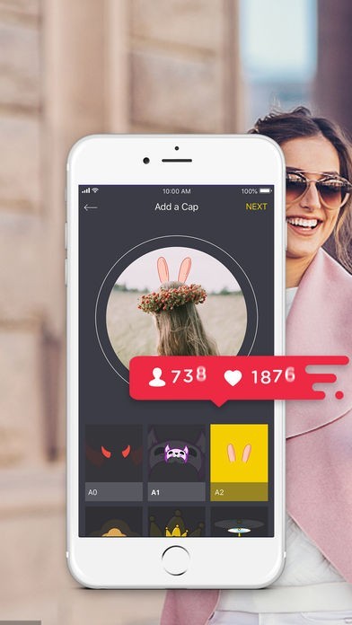 画面をタップするだけで、表示された写真に帽子を被せることができます。どの帽子が似合うのか、気に入るまで気軽に試せます。画面はシンプルで余計なものは表示されません。