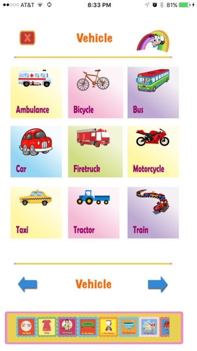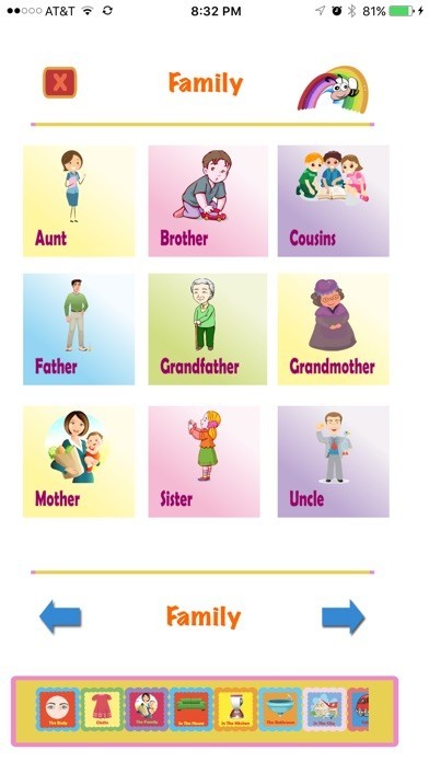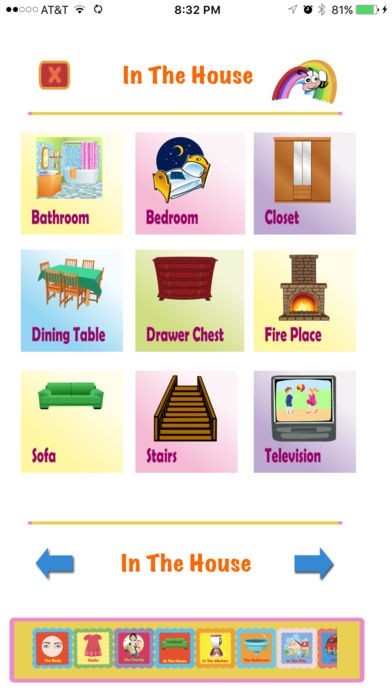 Categories include:Body, Family, Kitchen, In the house, Bathroom, Supermarket, In the city, In the park, Action Words, Tools, Animals, Party Time and many many more